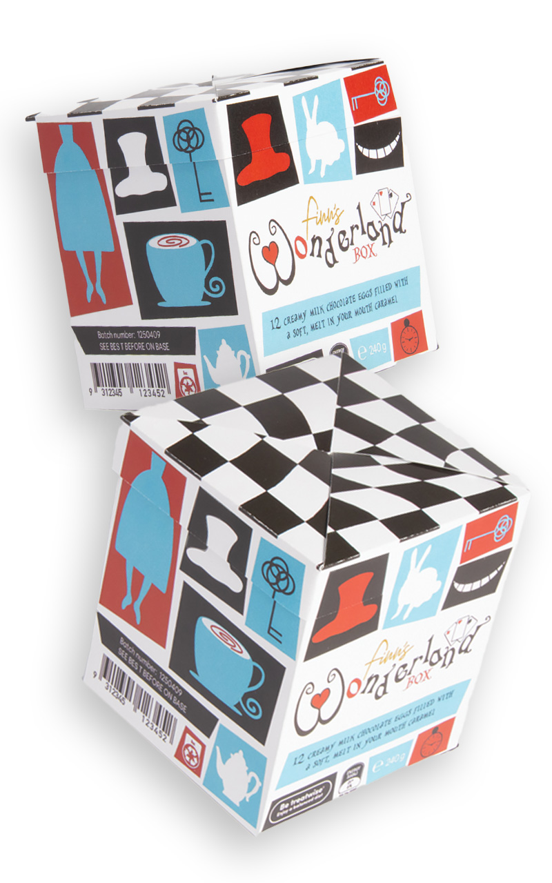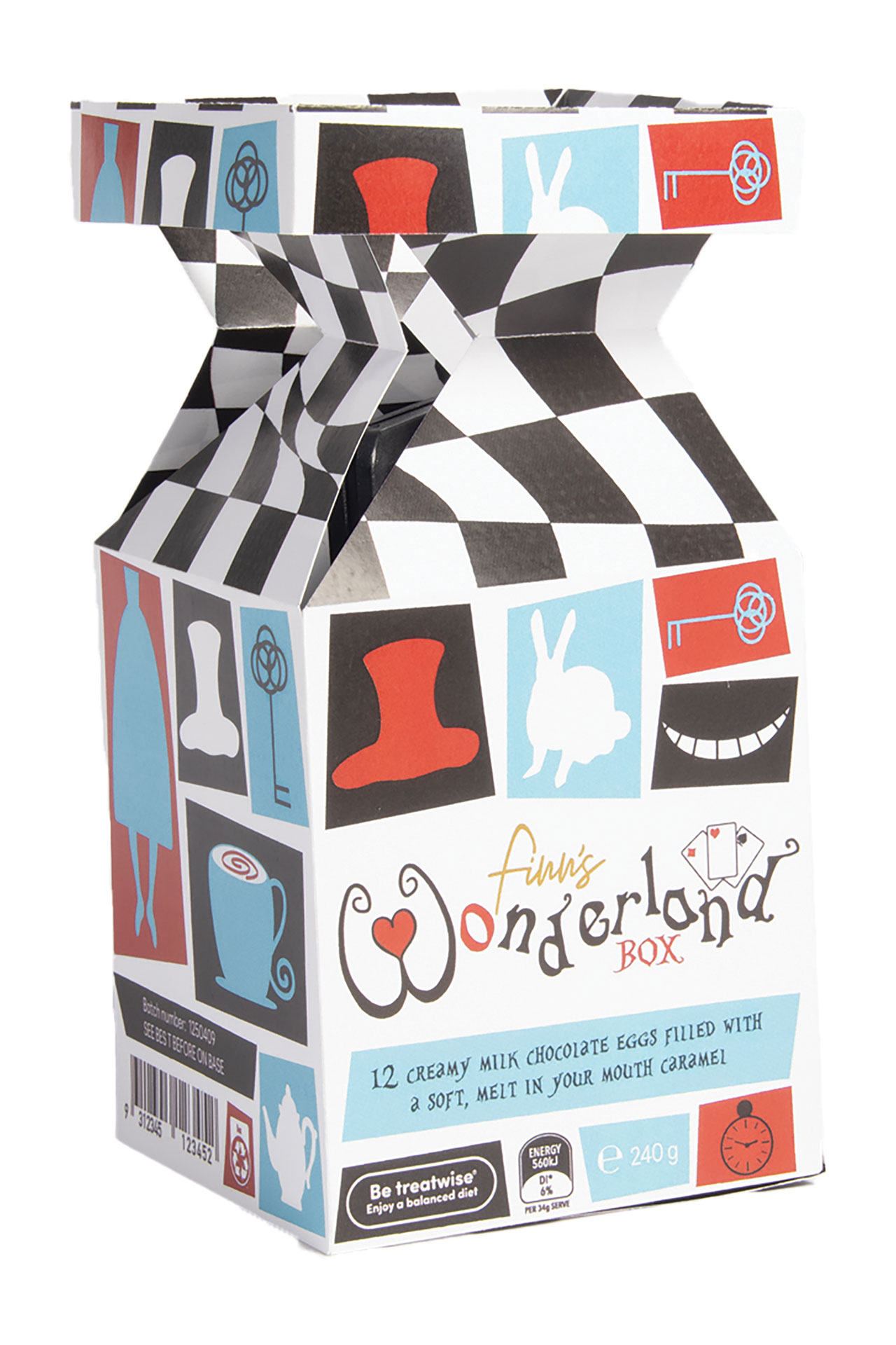 For Finn’s chocolate, I designed an Alice-in-Wonderland–inspired Easter packaging that transports shoppers down a whimsical rabbit hole.